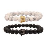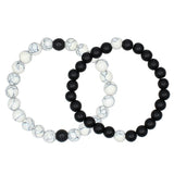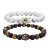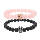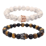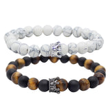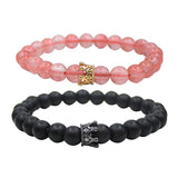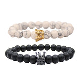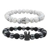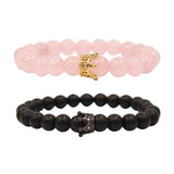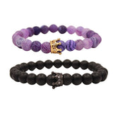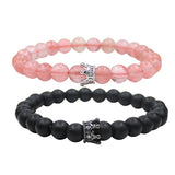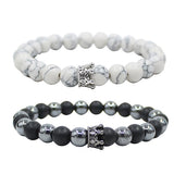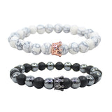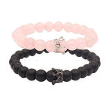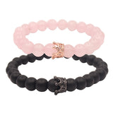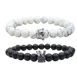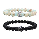 UEUC King&Queen Crown Distance Couple Bracelets His Hers Black Matte Agate 8mm Beads Bracelet